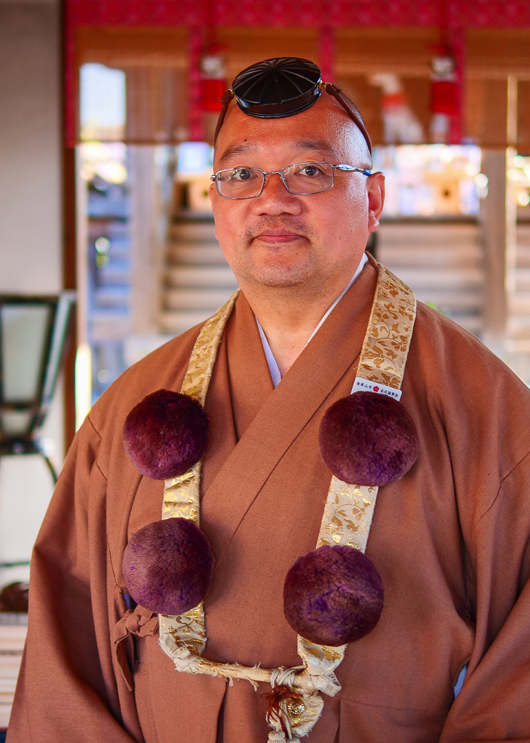 「山人犬の会」顧問。大同4年(809年)宥元法師のご開山より、修験の法灯を伝える山形の修験寺院「熊野山和光院」の法印。比叡山行院での加行・灌頂の後、羽黒山荒澤寺「秋の峰入り」二十四度をはじめ、大峯奥駈修行や日本三禅定など、いまなお全国各地の霊峰にて修行を重ねる。自身のライフワークとして取り組む湯殿山の「御澤掛け」を中心に、主宰する「雲切講」にて出羽三山「夏峰入峯」も例年厳修している。往昔より宗教者として地域社会と密接な関わりを持ちながら「法印さま」の名で呼び慕われてきた「里修験」の伝統を後世に伝えるべく、霊峰への入峯修行はもちろん、加持祈祷や季節の行事・祭礼などを通じて、天台宗という立場で修験の法灯を守り伝えている。